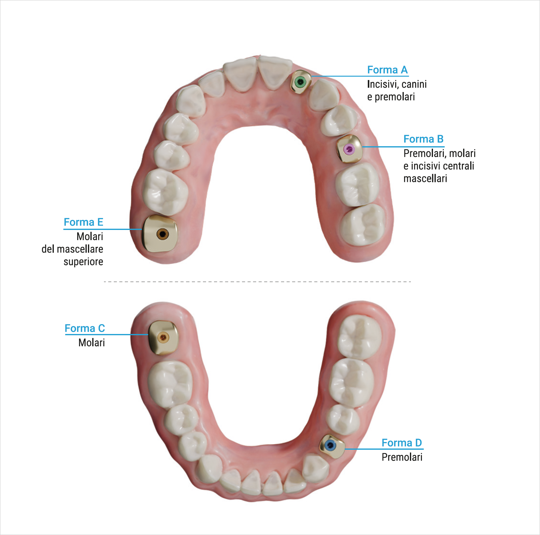 La sua forma anatomica si adatta perfettamente alla morfologia dei denti da sostituire. La sua superficie rivestita di nitruro di zirconio garantisce condizioni di guarigione ottimali, respingendo i batteri.